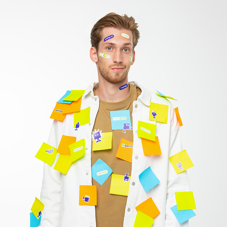 Berlingo активно взаимодействует с клиентами непосредственно в магазинах, где общение происходит не только у стойки с продукцией, но и на всей площади магазина. Рядовые информационные сообщения сопровождаются юмористическим визуальным контентом с участием главного героя рекламной кампании — Павла Воли.