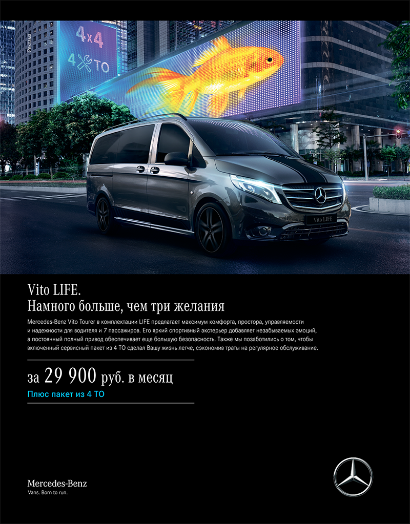Производитель легковых автомобилей премиального класса, грузовых автомобилей, автобусов и других транспортных средств — Mercedes-Benz. Вместе с русским представительством концерна было реализовано большое количество рекламных кампании.